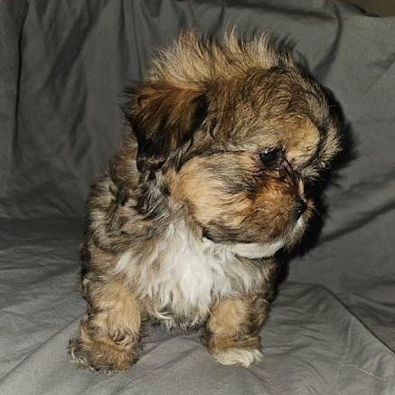Ihre dichten, flauschigen Sable-Felle zeigen warme Gold-, Braun- und Cremeabstufungen, ergänzt durch weiche dunkle Akzente. Mit ihren runden Augen, kurzen Schnauzen und kompakten Körpern verkörpern sie den klassischen Teacup Shih Tzu Typ.