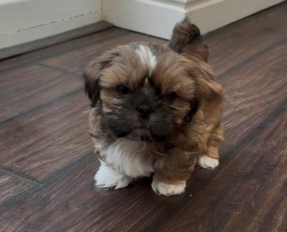 Ein kleinrahmiger, flauschiger Teacup Shih Tzu, der sein niedliches Teddybär-Aussehen auch im Erwachsenenalter behalten wird.